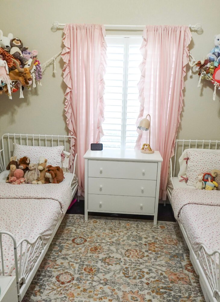 Can we talk about Pinterest for a second? If you search “girls bedroom organization” or “shared kids room ideas” you will find page after page of absolutely stunning rooms. Beautiful beds. Matching everything. Soft lighting. Coordinated decor. And zero toys….
